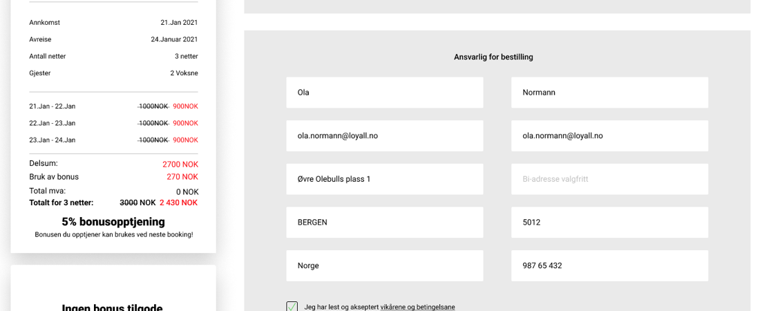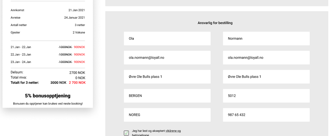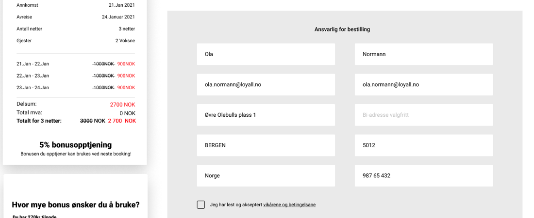 Loyall's API facilitates that the customer is not disturbed in the booking process by only verifying an SMS, whether you are a member or want to become a member.