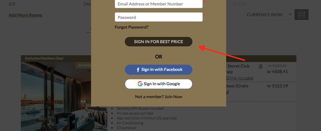 - Member-price/best price is automatically selected as the preffered option during booking.